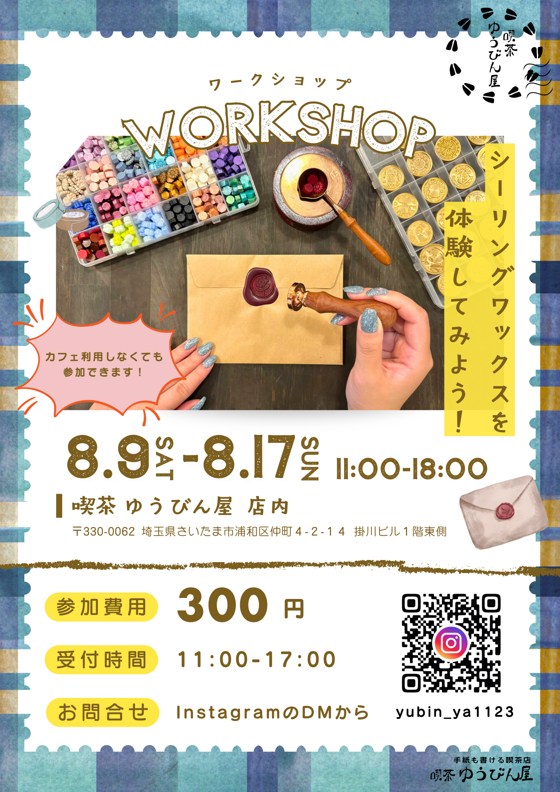 8/9(土)〜8/17(日)は、カフェのご利用なしでも1回300円でシーリングワックスのみ体験ができます💌